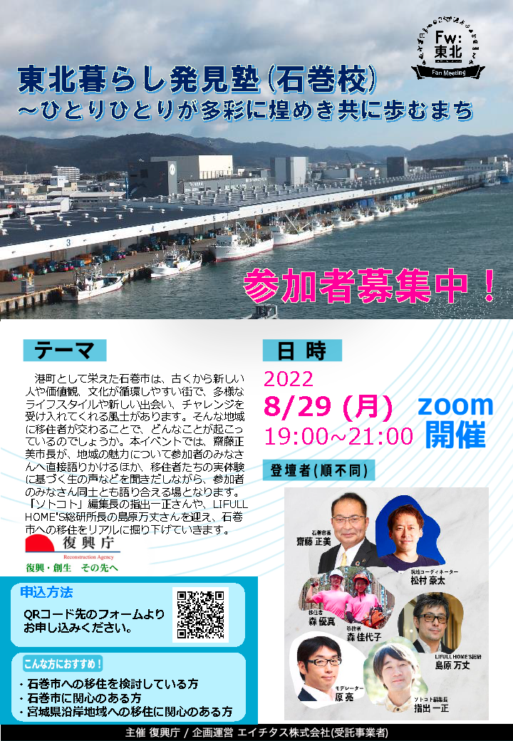 さらにゲストにはDGsマガジン「ソトコト」の指出編集長や、LIFULL HOME'S総研の島原所長らを迎え、石巻市への移住をリアルに掘り下げていきます。