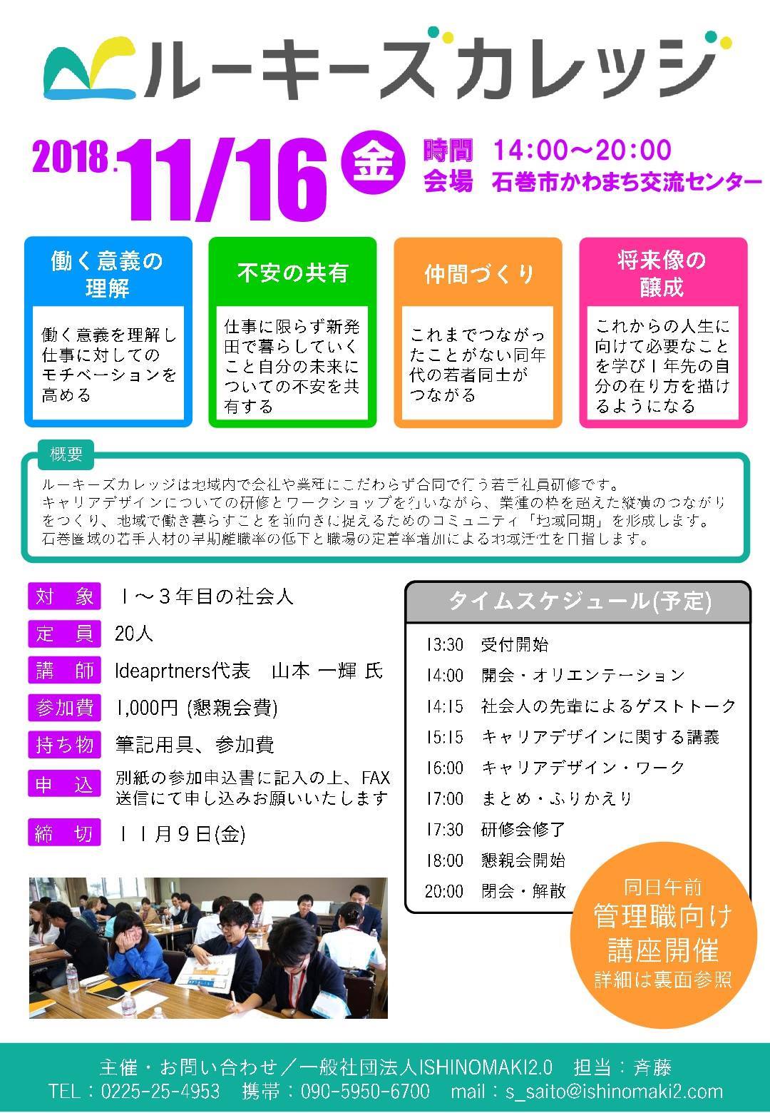 石巻地域合同若手社会人研修「ルーキーズカレッジ」を開催します。