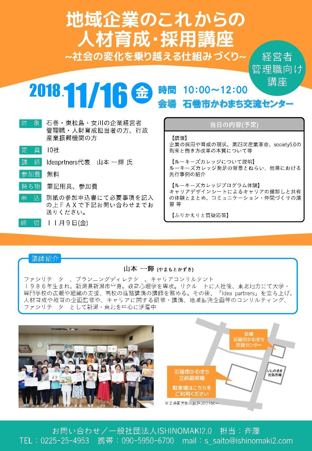 対象:石巻・東松島・女川の企業経営者 管理職・人財育成担当者