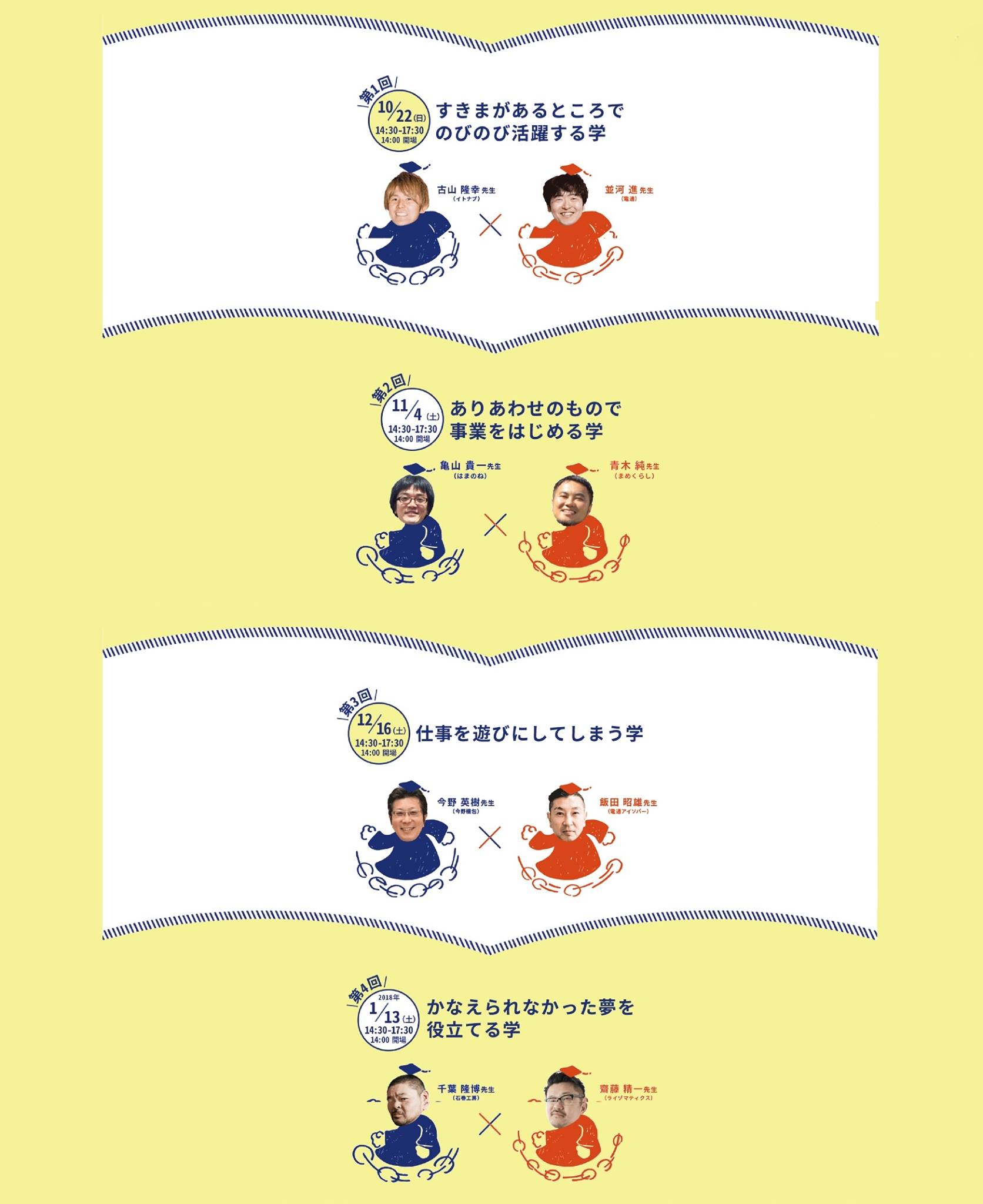 今年度は、東京にて4つの学科を開講。各回で、ゲスト講師もお迎えします。